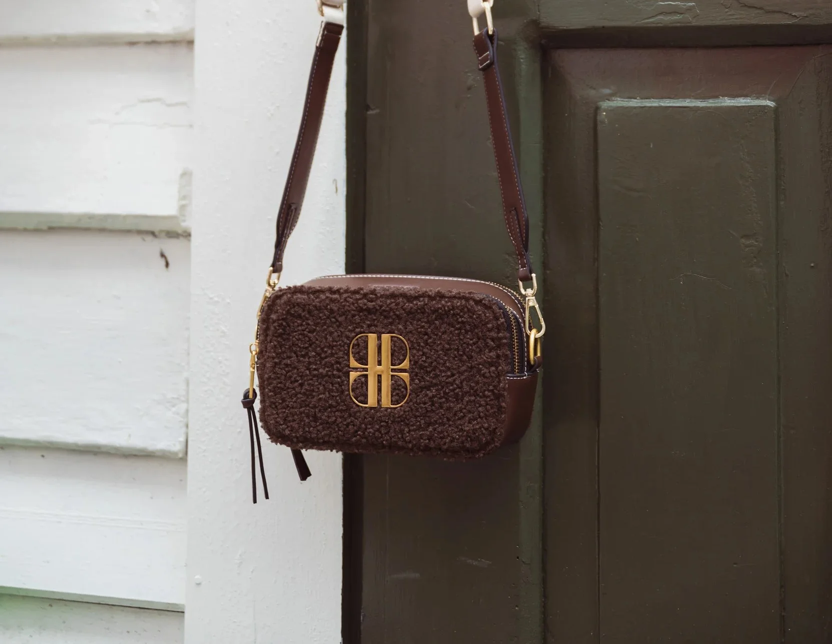 Natuurlijk maak je de outfit écht helemaal af met een bruine tas. Laurant David heeft deze prachtige teddy bruine tassen.